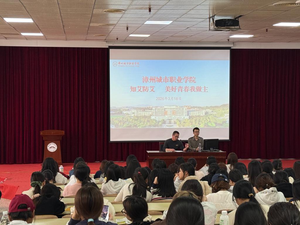 为深化青年学生对艾滋病的科学认知,强化自我防护意识,营造健康安全的校园环境。2026年3月18日下午,我院在梯形教室六成功举办了“知艾防艾,美好青春我做主”防艾知识主题讲座,此次讲座邀请了漳州市芗城区疾病预防控制中心防艾科朱佳利医师来院授课,后勤管理处代表黄棋城主持讲座。